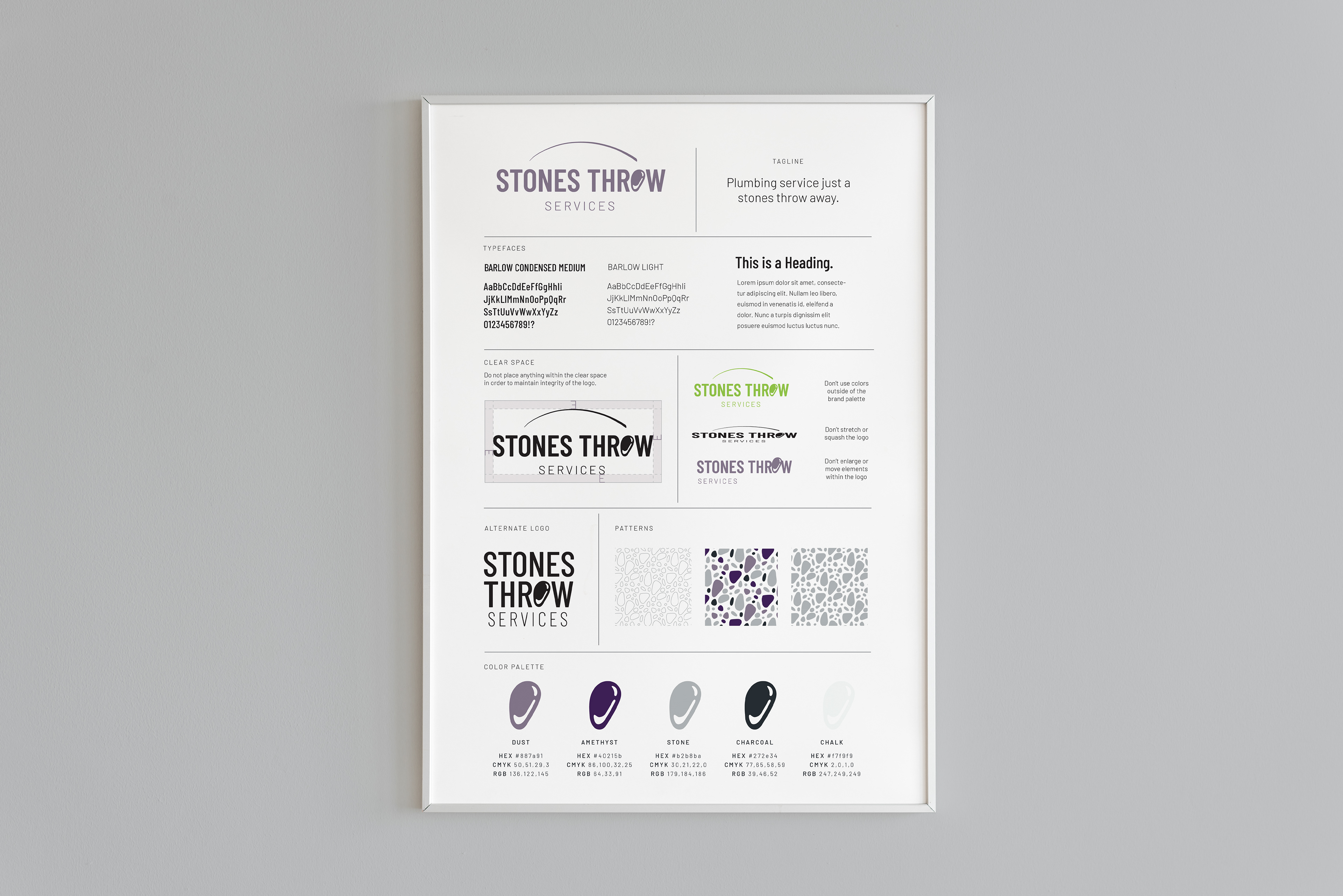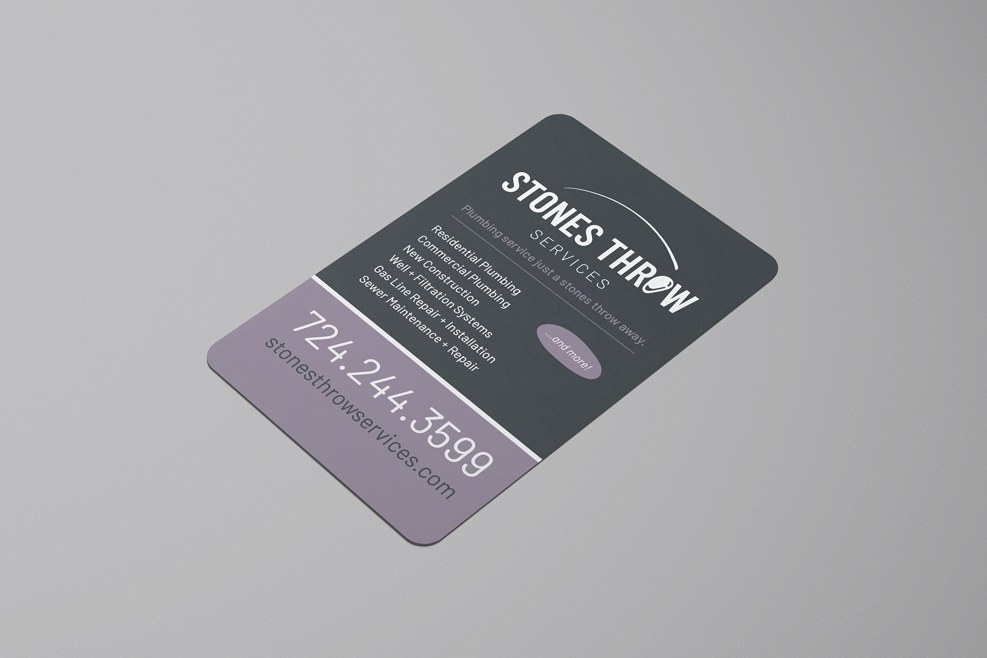 Stones Throw Services is a plumbing service business based out of Ligonier, PA. They wanted a fresh, modern look when launching this brand, avoiding the stereotypical plumbing business branding.
